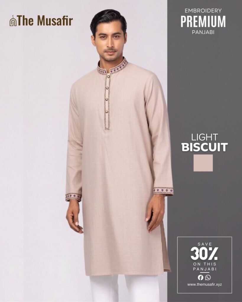 বিস্কুট কালার – প্রিমিয়াম কটন ফেব্রিকের এমব্রয়ডারি পাঞ্জাবি