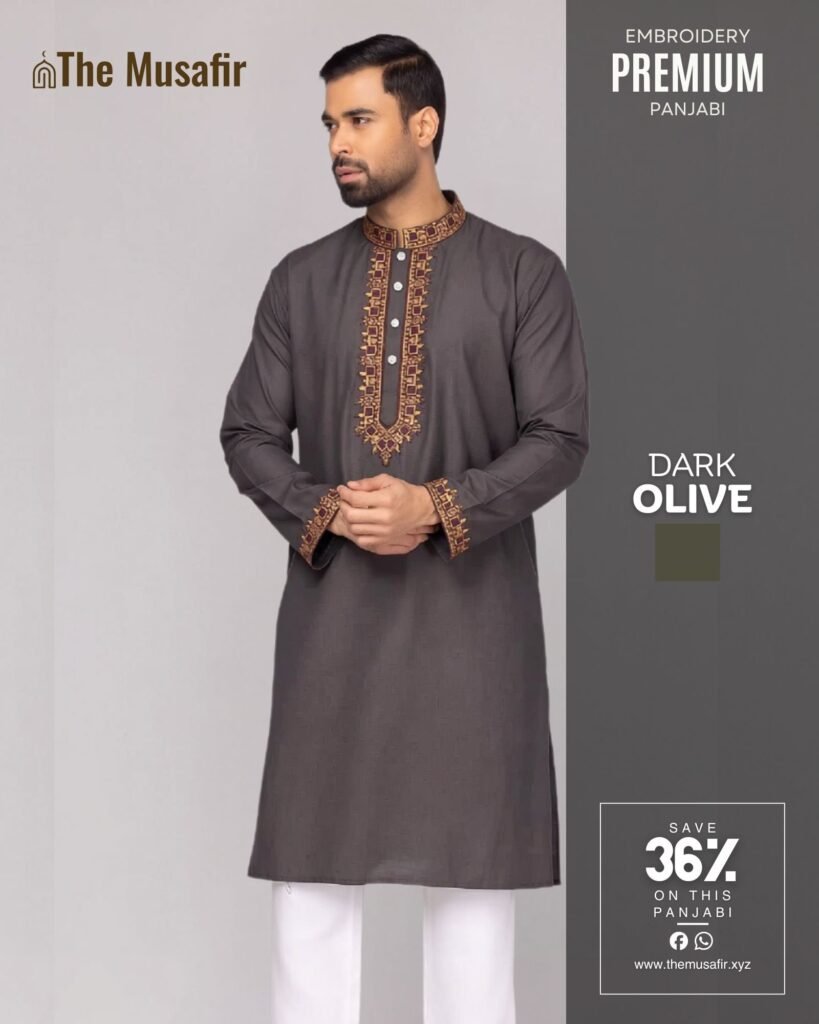 অলিভ কালার – প্রিমিয়াম কটন ফেব্রিকের এমব্রয়ডারি পাঞ্জাবি