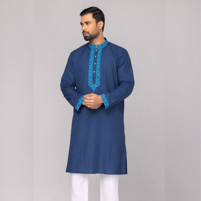 পেট্রল ব্লু কালার কটন ফেব্রিকের এমব্রয়ডারি পাঞ্জাবি