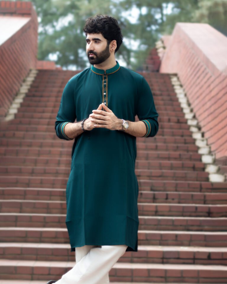 বোটল গ্রিন কালার প্রিমিয়াম এমব্রয়ডারি পাঞ্জাবি