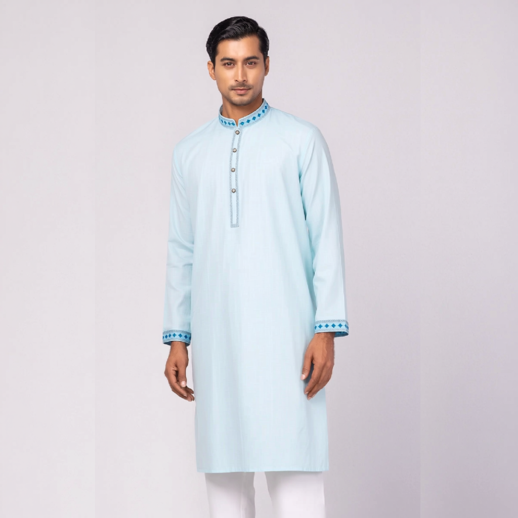 স্কাই ব্লু কালার কটন ফেব্রিকের এমব্রয়ডারি পাঞ্জাবি