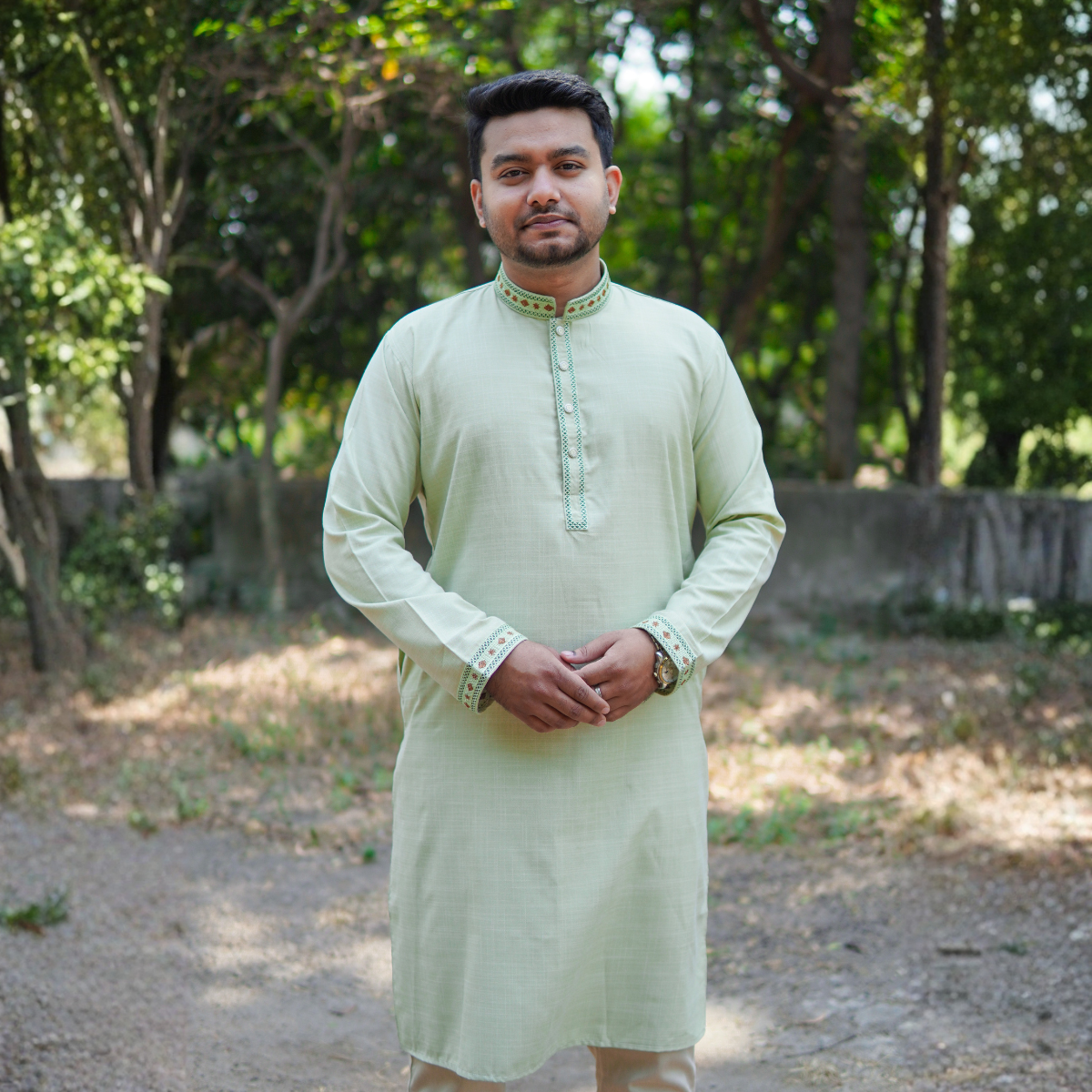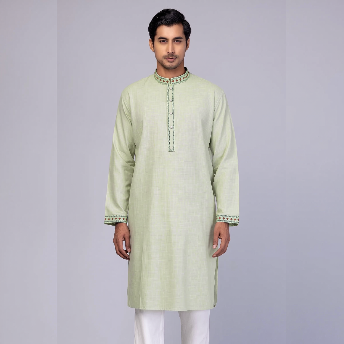 অলিভ কালার কটন ফেব্রিকের এমব্রয়ডারি পাঞ্জাবি