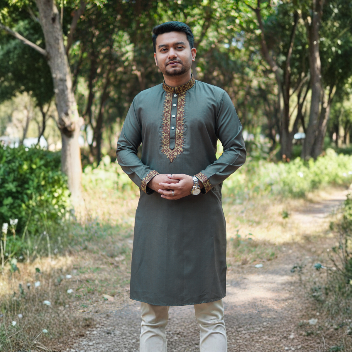 অলিভ কালার কটন ফেব্রিকের এমব্রয়ডারি পাঞ্জাবি