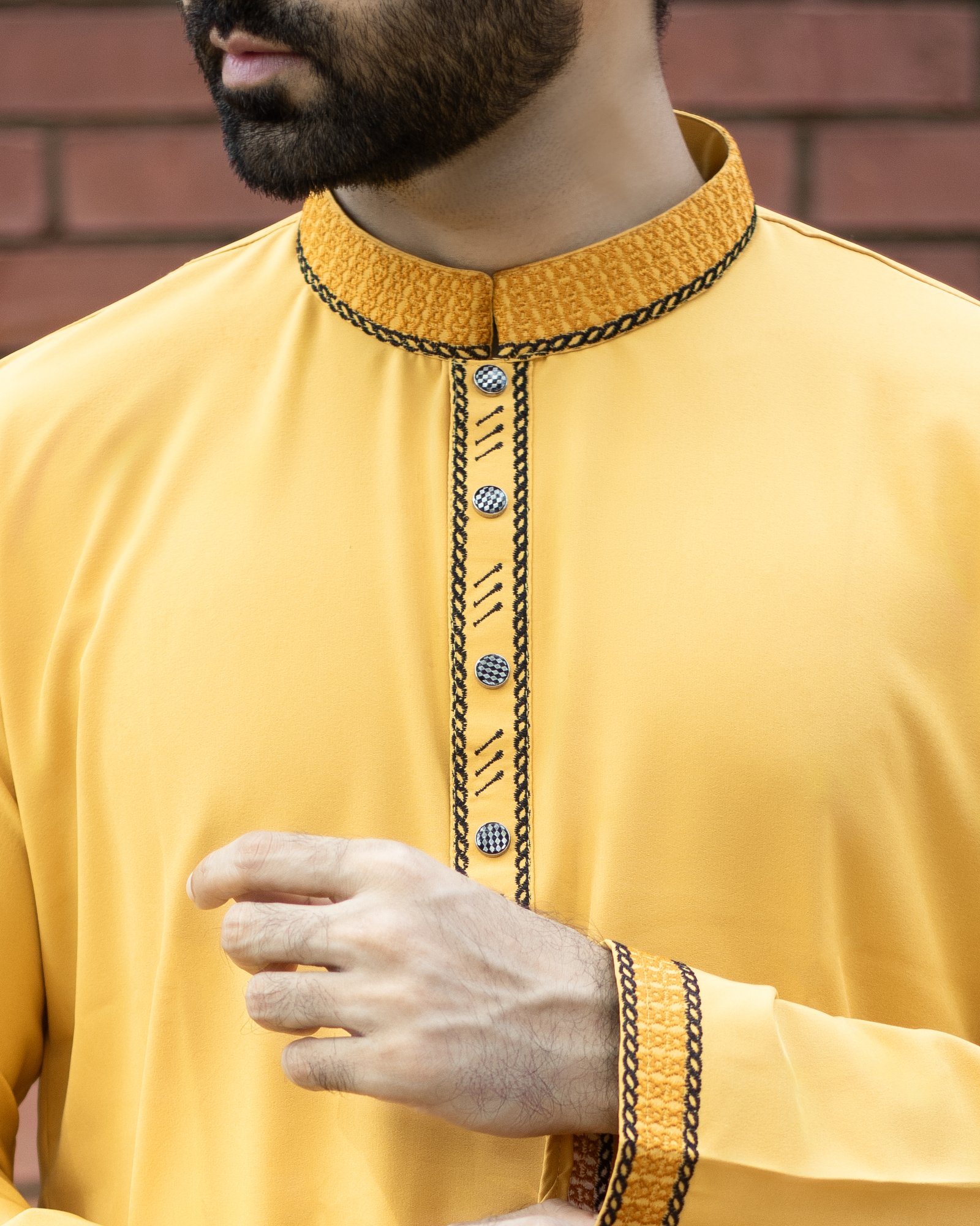 মাস্টার্ড ইয়েলো কালার প্রিমিয়াম এমব্রয়ডারি পাঞ্জাবি