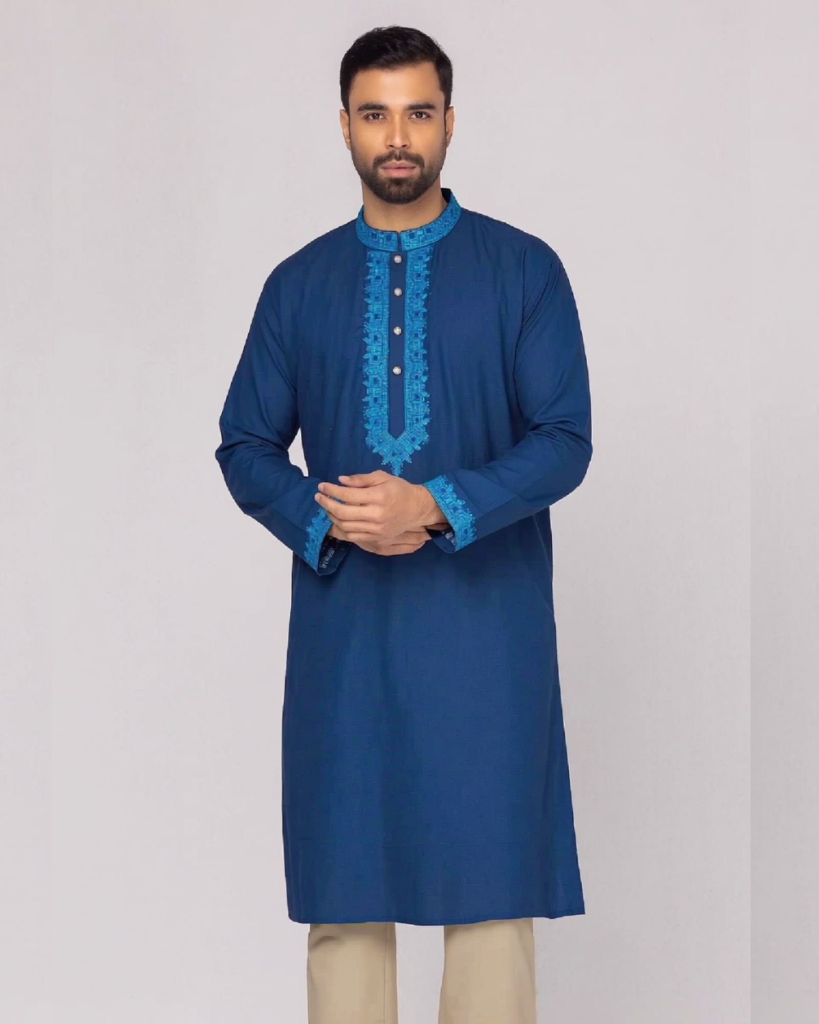 পেট্রোল ব্লু কালার – প্রিমিয়াম কটন ফেব্রিকের এমব্রয়ডারি পাঞ্জাবি